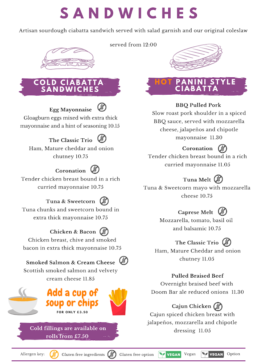 To Start: - 2 x Pork Sausage Roll - 2 x Basil Oil & Goat's Cheese Quiche FINGER SANDWICHES filled with Smoked Salmon & Cream Cheese Coronation Chicken Cheddar Cheese & Chutney sweets Mini Scone with Clotted Cream & Jam Mini Carrot Cake Mini Empire Biscuit Millionaire Shortbread Individual Cheesecake Pot White Chocolate & Cranberry Slice